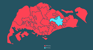 | The aftermath: That little patch of blue on the eastern side of Singapore is the area won by WP. |